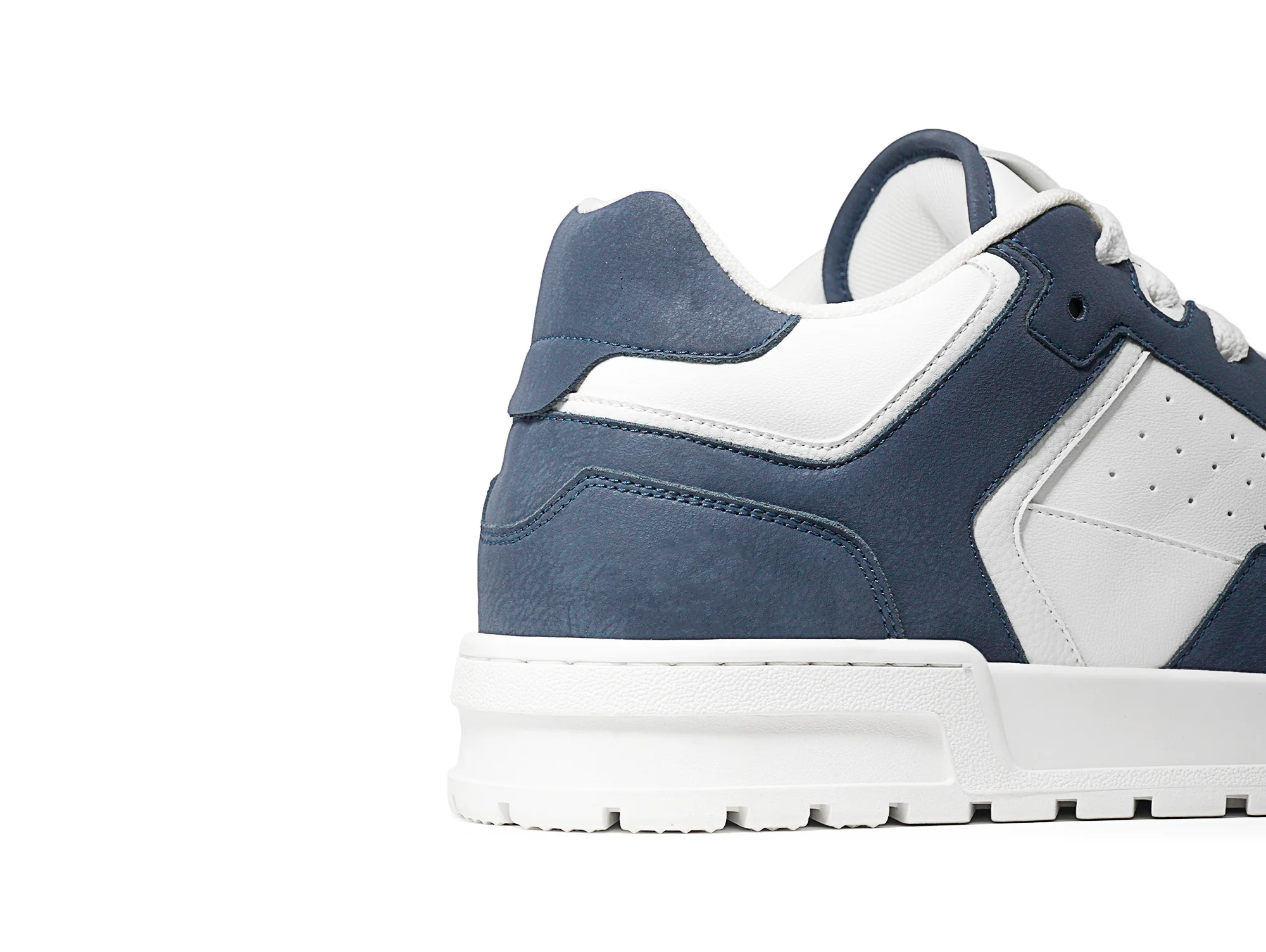 Forza Mirage brings a fresh twist to the Forza lineup with a clean white base contrasted by deep ocean-blue overlays. The layered, multi-textured upper blends smooth leather with soft matte panels, giving the silhouette a premium, modern edge. Built on our retro skate-inspired sole, our Mirage variation balances bold colour blocking with everyday wearability. The low-cut design and integrated 2.5" height boost deliver confident elevation without compromising comfort.
