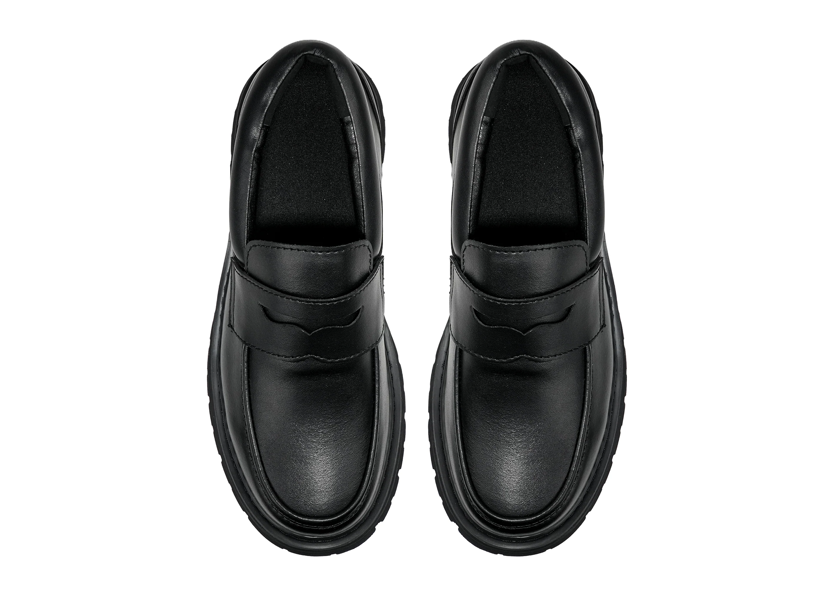 Marlin Black Loafer is a modern rework of a classic dress staple, engineered to project authority, polish, and quiet confidence. Built with a sleek penny-loafer upper and grounded by a bold lug sole, the silhouette balances timeless tailoring with contemporary edge. Clean stitching, smooth matte PU leather, and a streamlined profile keep it sharp and intentional, while our discreet height system delivers an uncompromising lift designed for all-day wear.