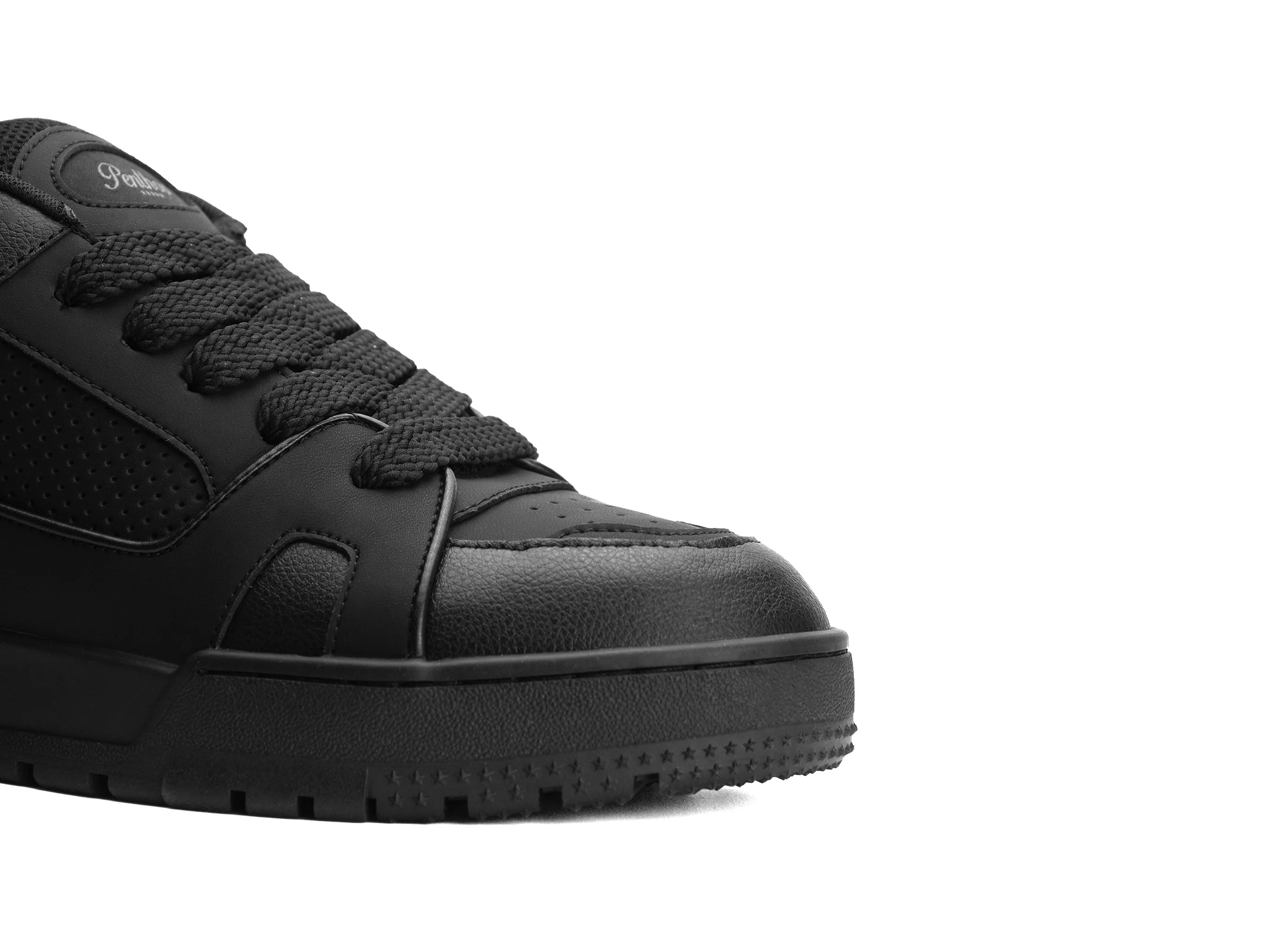 Penthos Blackout refines the classic silhouette with an all-black, low-reflection finish and perforated paneling for a stealth, modern edge. The wide padded tongue and 20mm skate laces remain core to the Penthos DNA, designed to compliment loose pants, sweatpants, or denim. Blackout delivers a discreet 2.5" (6.3cm) height boost for confidence that feels natural, not forced.