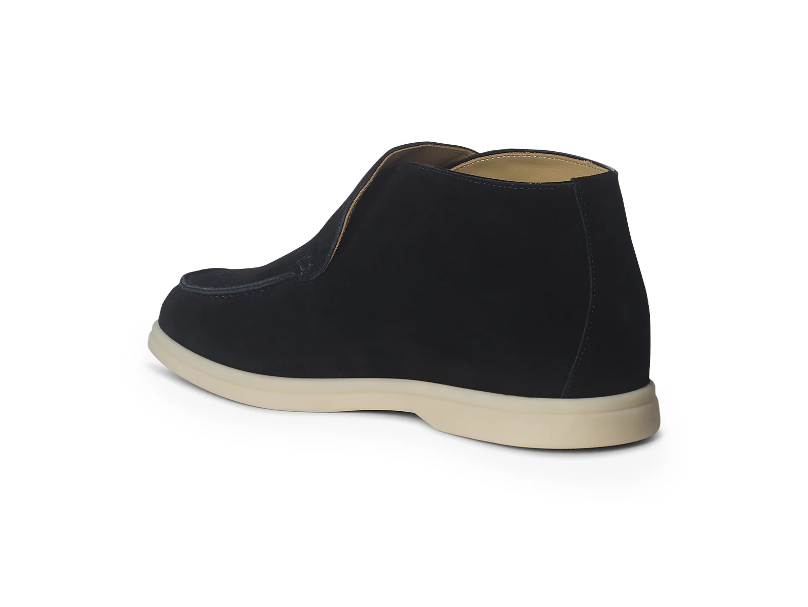 Introducing the Porto loafers, a refined fusion of luxury and everyday sophistication. Designed with a sleek, modern silhouette, these loafers elevate your look with a discreet 2-inch height boost, providing confidence without compromising on comfort. Crafted from premium black suede and paired with a lightweight cream-colored sole, the Porto is the perfect balance of classic elegance and contemporary style.