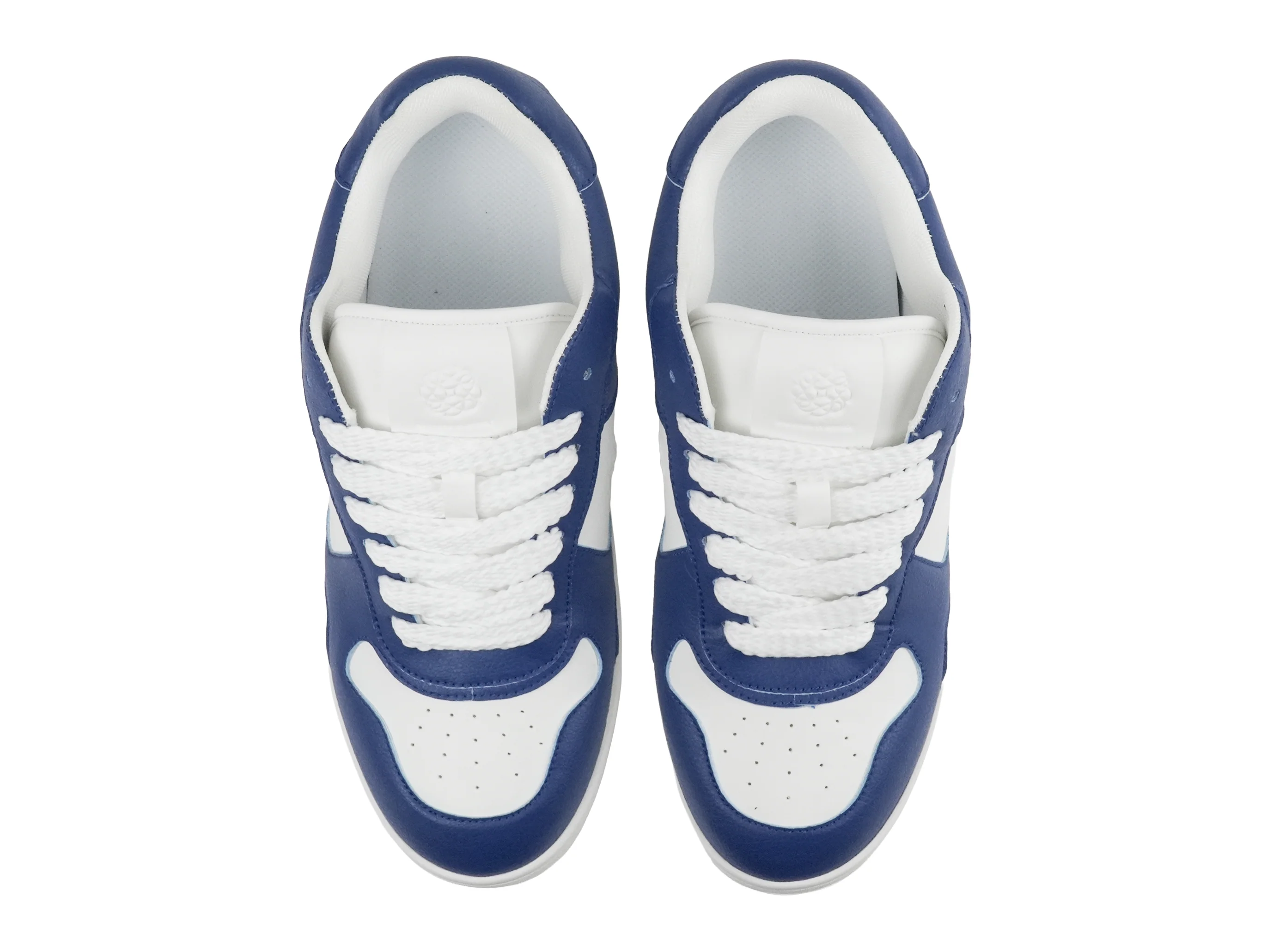 Strada Blue defines everyday confidence with a striking two-tone design, featuring deep royal blue overlays against a pristine white base. Constructed from tumbled PU leather, the upper delivers a premium grainy finish and lasting durability. This court-inspired silhouette combines athletic heritage with a refined profile, discreetly elevated with our signature height boost mechanism.